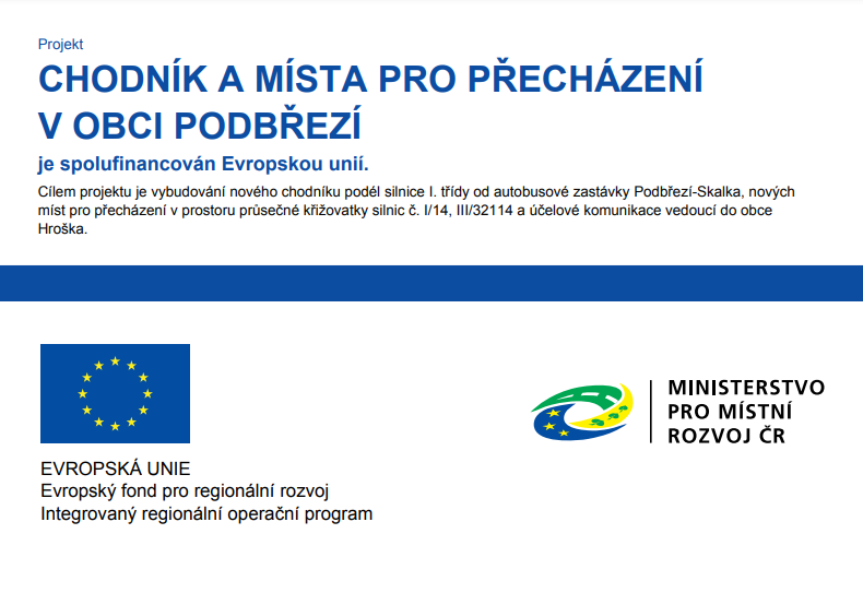2021 Chodník a místa pro přecházení v obci Podbřezí - Financováno za podpory Evropské unie a Ministerstva pro místní rozvoj